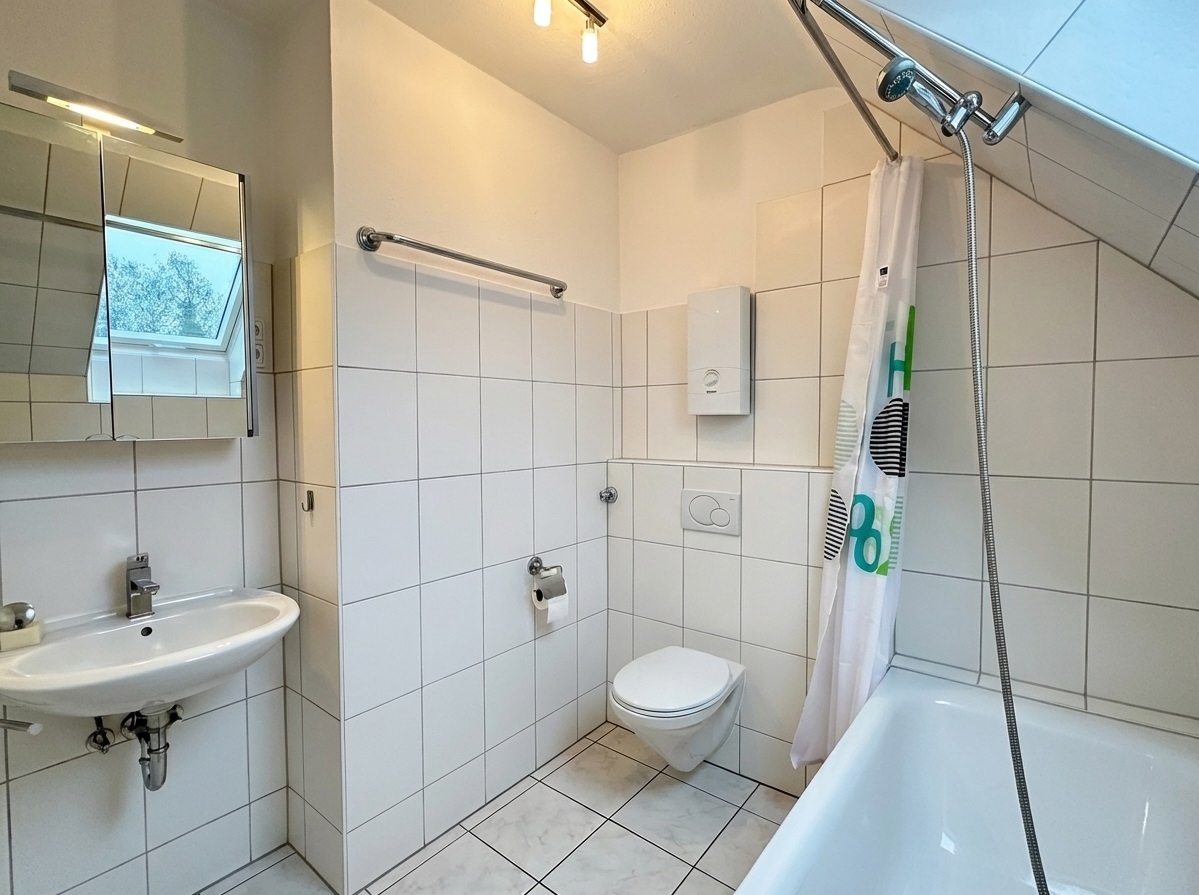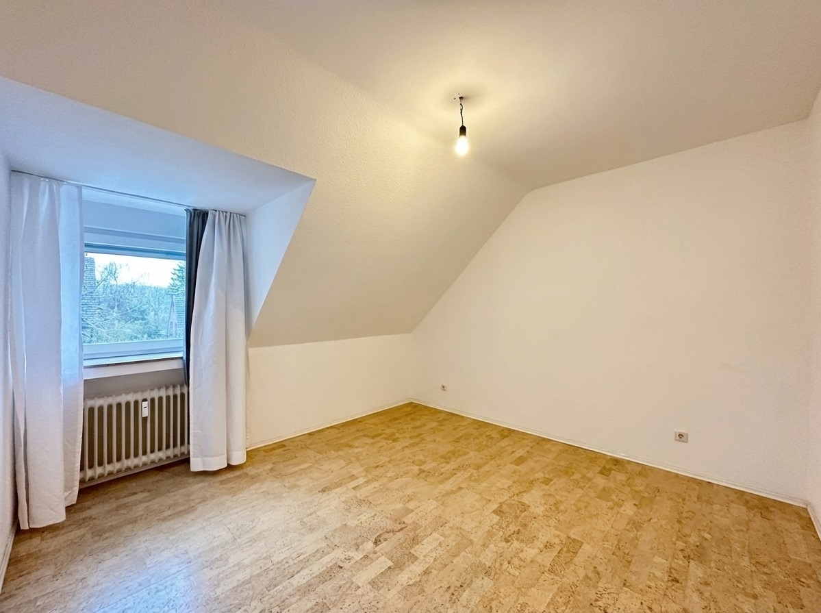 Diese charmante Dachgeschosswohnung überzeugt durch eine gelungene Raumaufteilung und ein angenehmes Wohngefühl auf ca. 57 m². Sie befindet sich im Dachgeschoss eines gepflegten Mehrfamilienhauses aus dem Jahr 1970 und bietet durch die Lage in der 2,5. Etage eine ruhige und lichtdurchflutete Wohnatmosphäre. Bereits beim Betreten der Wohnung erschließt sich ein gut strukturierter Grundriss mit klar getrennten Wohnbereichen. Das großzügige Wohnzimmer bildet den zentralen Lebensmittelpunkt und bietet ausreichend Platz für eine gemütliche Wohnlandschaft sowie einen Essbereich. Große Fensterflächen sorgen hier für eine helle und freundliche Stimmung. Die separate Küche ist funktional geschnitten und bietet ausreichend Arbeits- und Stauraum. Durch das Dachflächenfenster entsteht auch hier ein angenehmes, natürliches Licht. Das Schlafzimmer präsentiert sich ruhig gelegen und bietet ausreichend Platz für ein Doppelbett sowie einen Kleiderschrank. Ergänzt wird das Raumangebot durch ein weiteres Zimmer, das sich ideal als Arbeits-, Gäste- oder Ankleidezimmer nutzen lässt. Das Badezimmer ist mit einer Badewanne ausgestattet und verfügt ebenfalls über ein Dachflächenfenster, was für gute Belichtung und Belüftung sorgt. Typisch für das Dachgeschoss sorgen die leichten Schrägen für eine gemütliche Wohnatmosphäre und verleihen der Wohnung ihren besonderen Charakter. Abgerundet wird dieses Angebot durch einen eigenen Kellerraum, der zusätzlichen Stauraum bietet. Insgesamt handelt es sich um eine gepflegte und gut geschnittene Wohnung, die sich ideal für Singles oder Paare eignetAusstattung