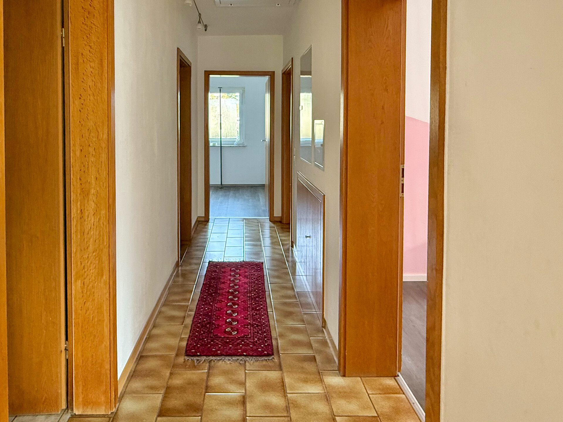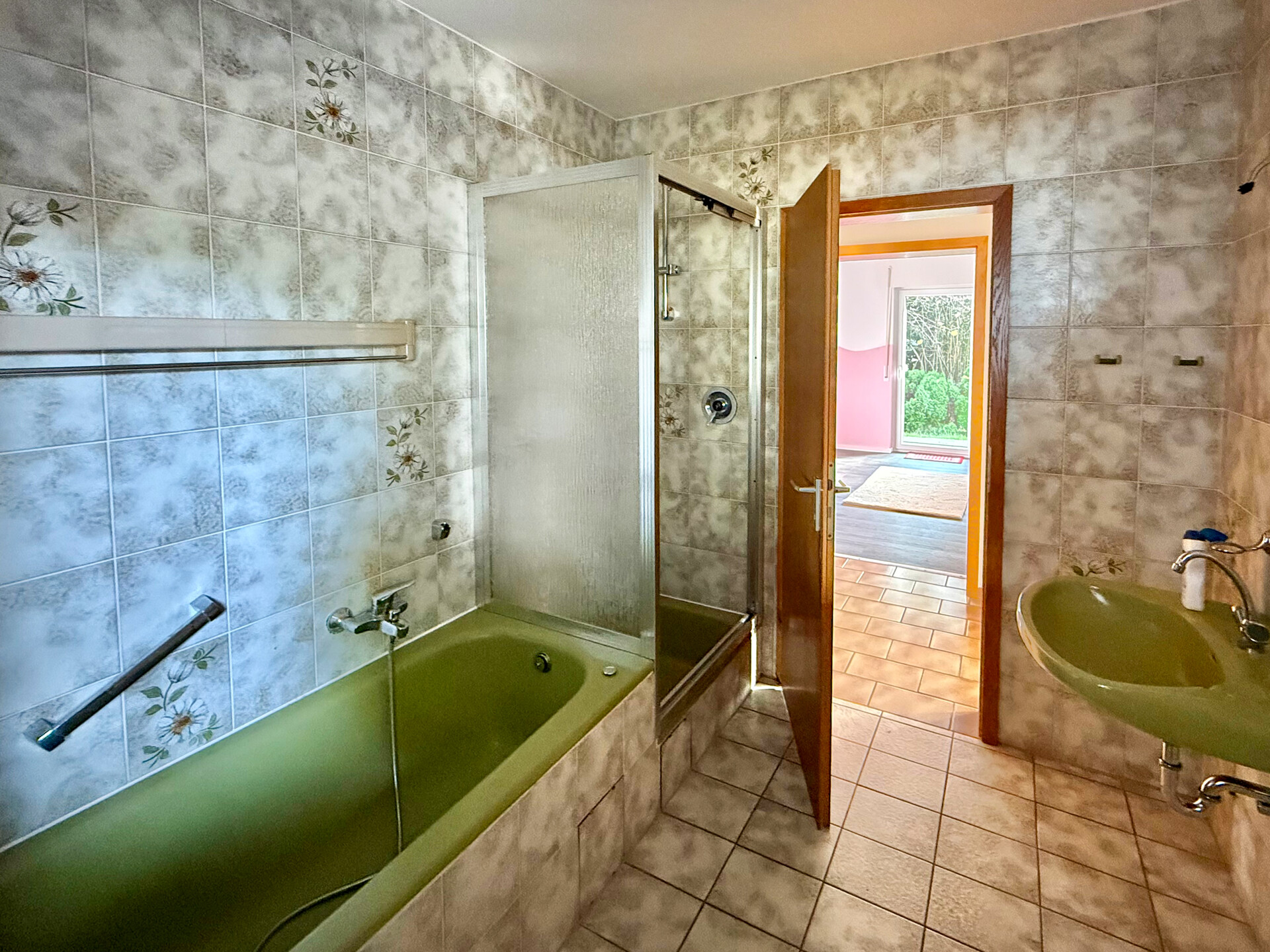 Dieser Bungalow aus ca. 1980 befindet sich in einer beliebten, ruhigen Wohnlage von Bad Marienberg. Mit rund 118 m² Wohnfläche eignet er sich ideal für Paare, Senioren oder kleine Familien. Der helle Wohn- /Essbereich mit großer Fensterfront öffnet sich zur überdachten Süd-West-Terrasse und in den pflegeleichten Garten – perfekt für alle, die wenig Aufwand wünschen und dennoch Wert auf eine grüne Außenfläche legen. Neben einem geräumigen Schlafzimmer stehen zwei weitere Zimmer zur Verfügung, nutzbar als Kinder-, Gästezimmer oder Büro. Zwei Tageslichtbäder sorgen für Komfort. Direkt an die Küche schließt sich ein HWR mit Gastherme an, der sich gut für Vorräte oder Haushaltsgeräte eignet. Die Garage ist über einen Nebenflur mit dem Haus verbunden – ideal, um Einkäufe bequem ins Innere zu bringen. Dieser Flur bietet zudem Platz für Schuhe oder Alltagsgegenstände und verfügt über einen Waschmaschinenanschluss. Zusätzlich zur Hauptterrasse steht eine weitere, südöstlich ausgerichtete Terrasse bereit, ergänzt durch einen kleinen gepflasterten Sitzplatz. Der Dachboden, der sich über die gesamte Hausfläche erstreckt, bietet reichlich Stauraum. Die Lage verbindet Ruhe mit Zentrumsnähe: Einkaufsmöglichkeiten, Cafés uvm. sind in wenigen Gehminuten oder mit dem Ato erreichbar!Ausstattung