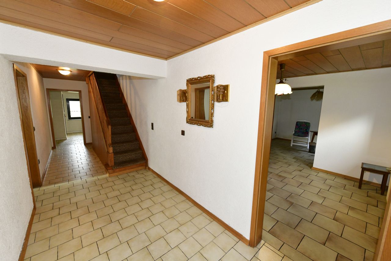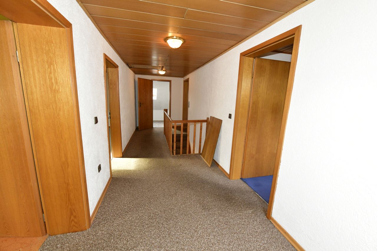 Zur Ausstattung sei stichpunktartig erwähnt: ISO-Doppelverglasung-Aluminium teils in Sprossenausführung, im Obergeschoss Dachflächenfenster, Bodenbeläge teils gefliest und mit Teppichboden belegt, Holzbalkendecken, Gaszentralheizung mit zentraler Warmwasserversorgung, Elektroinstallation in zeitgemäßer Ausführung, massive Hauseingangstüre in Holz, weitere Stellplätze z.B. für ein Wohnmobil vor dem Haus, gepflasterte Einfahrt, Gartenteich mit Pavillon, großer Freisitz, Gartenhaus, etc.Lage