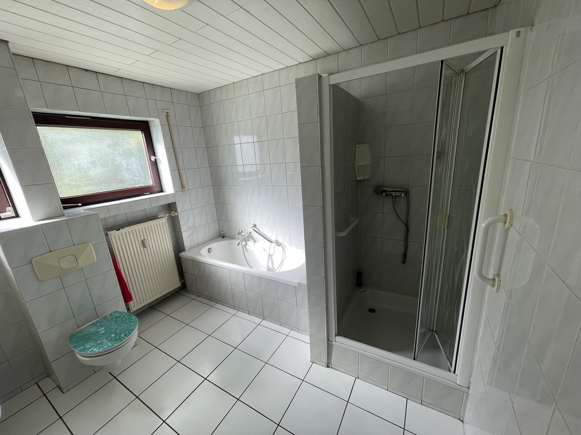 Die großzügige Erdgeschosswohnung mit ca. 112 m² Wohnfläche befindet sich in einem gepflegten Mehrfamilienhaus mit fünf Parteien in Königswinter Ittenbach. Die Hauptwohnung mit ca. 96 m² überzeugt durch einen weitläufigen Wohn und Essbereich mit Zugang zum Balkon, eine Küche mit Zugang sowohl von der Diele als auch vom Wohnbereich, ein großzügiges Tageslichtbad mit Wanne und Dusche sowie zwei gut geschnittene Schlafzimmer. Ergänzt wird das Raumangebot durch ein separates Appartement mit eigenem Zugang über den Hausflur. Dieses umfasst eine kleine Diele, ein Tageslichtbad mit Dusche sowie ein Zimmer das sich ideal als Gästezimmer, Schlafzimmer oder Hobbyraum eignet. Aufgrund fehlender Küchenanschlüsse ist eine Nutzung als eigenständige Wohnung oder zur Untervermietung nicht möglich. Im Kellergeschoss stehen eine gemeinschaftliche Waschküche sowie ein außergewöhnlich großzügiger Abstellraum zur Verfügung, der sich in zwei Bereiche unterteilen lässt und vielfältige Nutzungsmöglichkeiten bietet, beispielsweise als Lagerfläche oder Werkstatt. Eine Garage direkt neben dem Hauseingang sowie ein zusätzlicher Stellplatz davor gehören ebenfalls zur Wohnung. Die rückwärtige Gartenfläche wird gemeinschaftlich genutzt. Darüber hinaus steht eine überdachte Terrasse mit Sitzgelegenheiten zur Verfügung. Die Wohnung eignet sich ideal für bis zu vier Personen. Die Haltung von Haustieren ist nach Absprache möglich.Ausstattung
