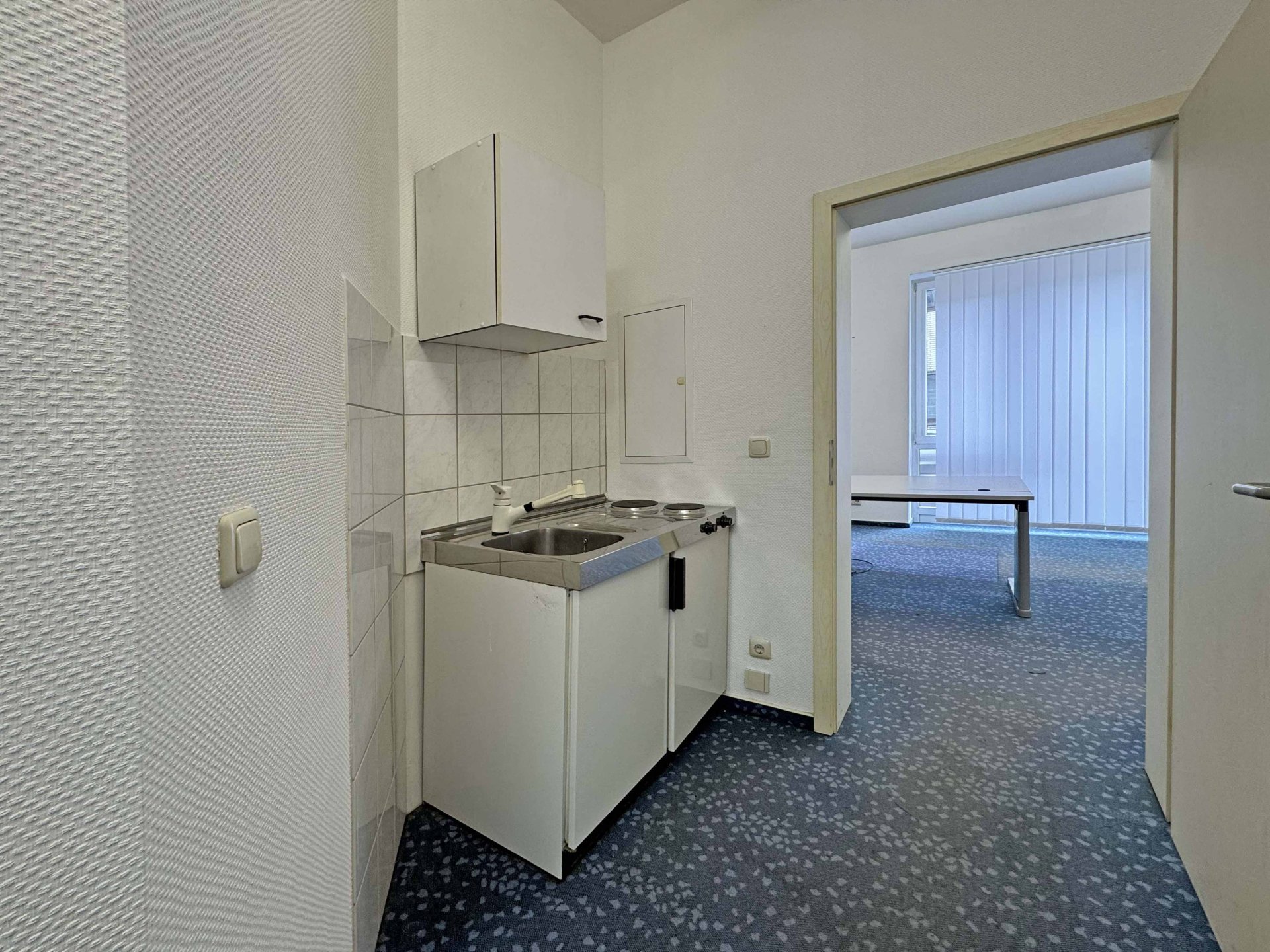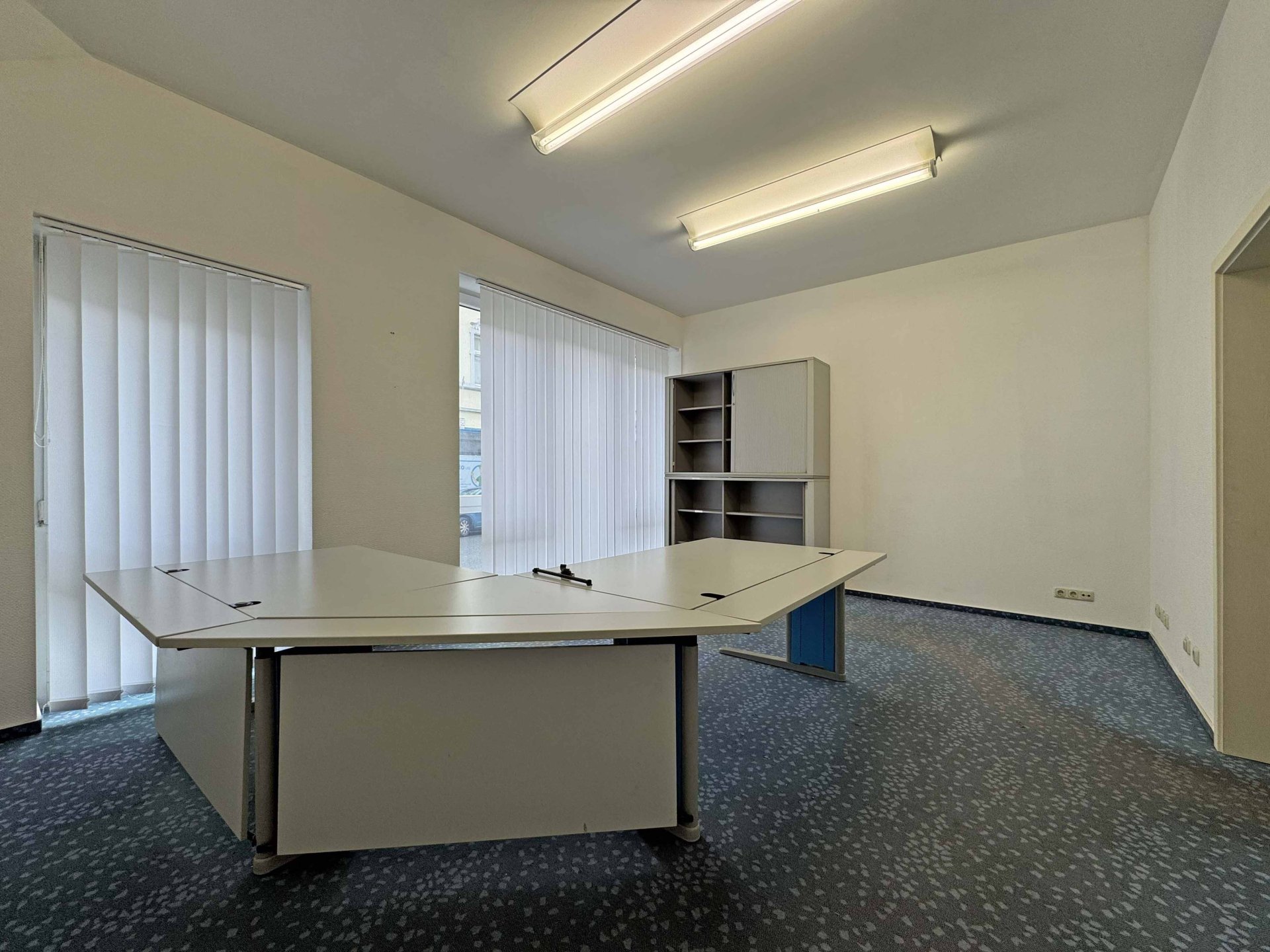 Das gut geschnittene Büro befindet sich im Erdgeschoss eines gepflegten Wohn-/ Geschäftshauses. Selten und besonders hervorzuheben: Im Keller befinden sich praktische Lagerflächen. Die PKW-Stellplätze im Hof sind über eine Toreinfahrt zu erreichen. Insgesamt stehen ein Empfangsbüro, ein Großraumbüro, ein Besucher-WC, ein Sozialraum sowie ein Mitarbeiter-WC zur Verfügung.Ausstattung