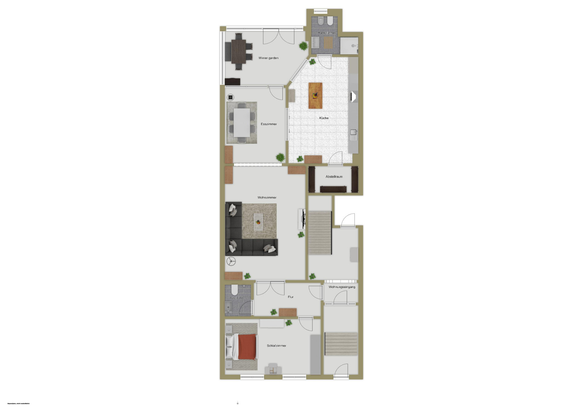 • Charmante Erdgeschosswohnung in einem gepflegten Mehrfamilienhaus aus der Gründerzeit (Baujahr ca. 1920) • Großzügige ca. 99 m² Wohnfläche, aktuell auf 2 Zimmer verteilt – mit wenig Aufwand erweiterbar zu 3 Zimmern • Hohe Decken und stilvolle Raumproportionen verleihen ein einzigartiges Wohngefühl Raumaufteilung & Highlights: • Einladender Eingangsbereich mit angrenzendem Gäste-WC • Großzügiger Wohn- und Essbereich mit offenem Schnitt und fließendem Übergang zur Küche • Wintergarten mit direktem Zugang zum privaten Garten – ideal für entspannte Stunden im Grünen • Schlafzimmer mit ruhiger Lage • Badezimmer mit moderner Dusche, angrenzend an die Küche • Die Küche war ursprünglich ein weiteres Schlafzimmer – eine Rückumwandlung ist problemlos möglich Außenbereich: • Ca. 97 m² Gartenfläche zur alleinigen Nutzung • Liebevoll angelegter Garten mit Platz für Entspannung und gesellige Momente Komfort & Besonderheiten: • Privates Kellerabteil mit integrierter Sauna – Ihr persönlicher Rückzugsort für erholsame Stunden Technik & Modernisierung: • Kernsanierung 2016–2017 – klassischer Altbaucharme trifft moderne Ausstattung • Kunststofffenster aus 2016/2017 • Gasheizung (Neuanlage 2022) für effiziente Wärmeversorgung • Tiefgaragenstellplatz optional anmietbar für 75,00€ • Monatliches Hausgeld i. H. v. 345,00 inkl. RücklagenLage