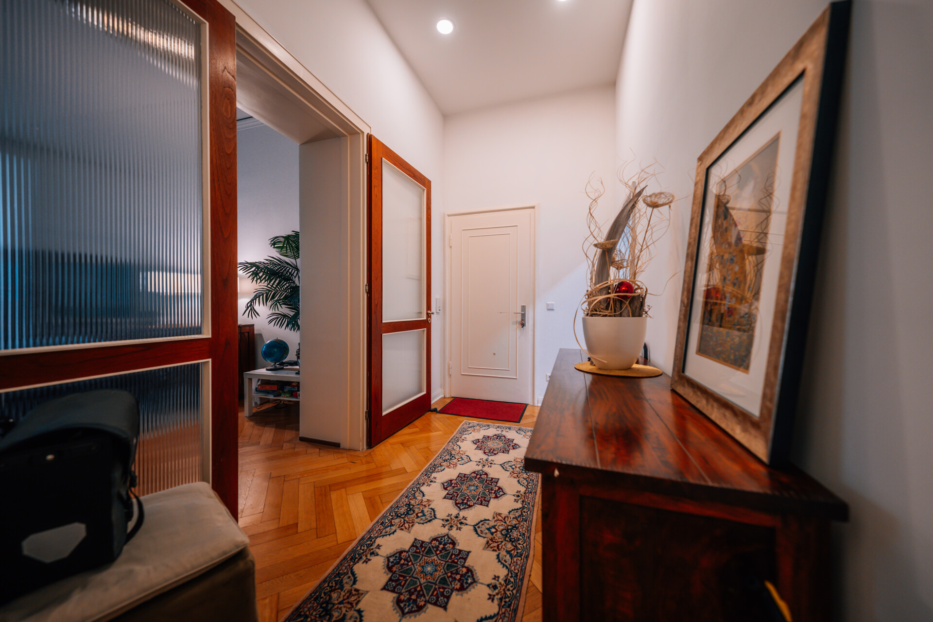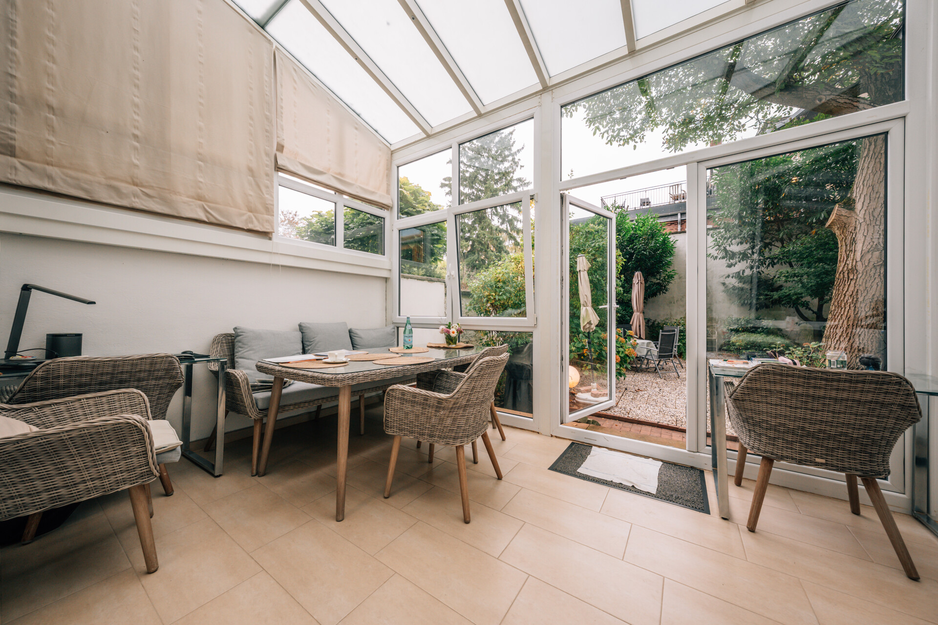 Man betritt diese Erdgeschosswohnung – und spürt sofort, dass sie etwas Besonderes ist. In einem gepflegten Mehrfamilienhaus aus der Gründerzeit, Baujahr um 1920, vereint sich historisches Flair mit einem Hauch moderner Lässigkeit. Hier wohnt man nicht einfach – man lebt Stil, Raum und Geschichte. Die rund 99 Quadratmeter Wohnfläche öffnen sich großzügig und hell. Hohe Decken, elegante Raumproportionen und eine klare Grundstruktur verleihen der Wohnung ihre zeitlose Wirkung. Aktuell in zwei weitläufige Zimmer aufgeteilt, lässt sie sich mit wenig Aufwand zu einer Drei-Zimmer-Wohnung umgestalten – ganz nach Ihren Bedürfnissen und Lebenskonzepten. Schon der Eingangsbereich vermittelt Weite und Ruhe, während das Gäste-WC dezent integriert ist. Der Wohn- und Essbereich entfaltet sich offen und kommunikativ – ein Raum, der sowohl zum Ankommen als auch zum Bleiben einlädt. Licht fällt großzügig durch die hohen Fensterflächen, fließt weiter in die Küche, die mit ihrer Nähe zum Essbereich eine natürliche Verbindung schafft. Besonders reizvoll ist der Wintergarten, der fast wie eine kleine Erweiterung des Wohnzimmers wirkt – hell, geschützt und mit direktem Zugang in den privaten Garten. Hier, auf etwa 97 m² eigener Gartenfläche, genießt man das Beste beider Welten: die Ruhe des Grünen und das urbane Leben direkt vor der Tür. Ob beim ersten Kaffee am Morgen oder beim Glas Wein in der Abendsonne – dieser Garten wird zum ganz persönlichen Rückzugsort. Das Schlafzimmer bietet mit seiner ruhigen Lage den perfekten Platz zum Abschalten, während das modern gestaltete Badezimmer mit Dusche funktional und stilvoll zugleich ist. Ursprünglich war die Küche einmal ein weiteres Schlafzimmer – wer möchte, kann diesen ursprünglichen Grundriss mühelos wiederherstellen und die Wohnung so flexibel an seine Lebensphase anpassen.Ausstattung