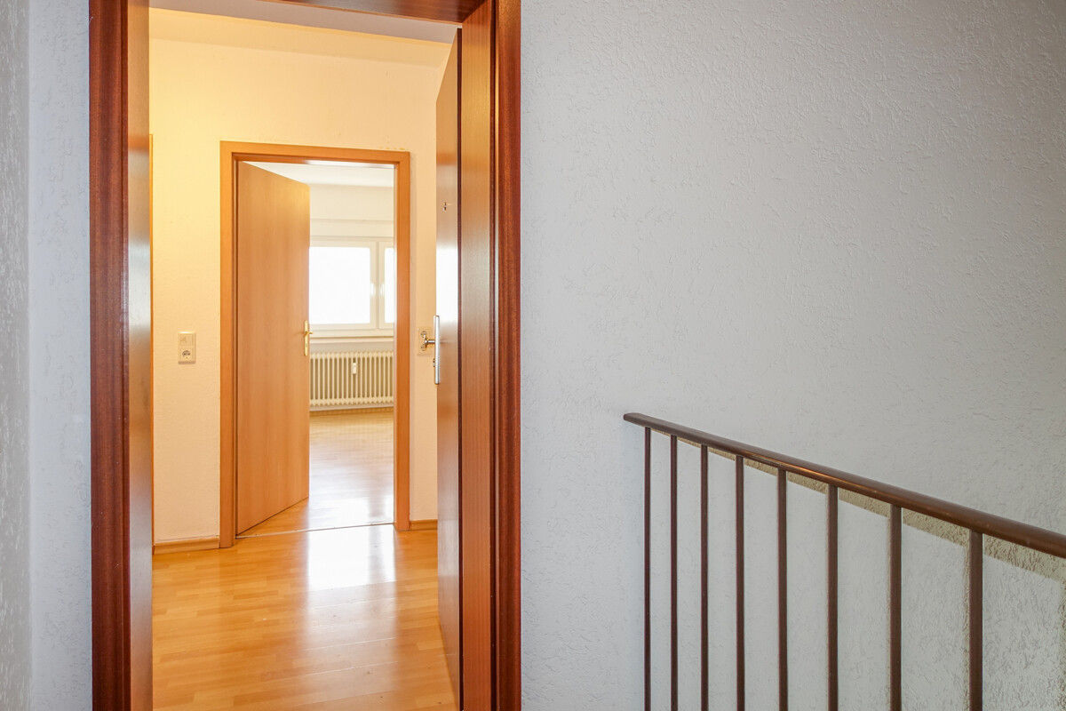 – 6-Parteien-Mehrfamilienhaus – Massive Bauweise – Öl-Zentralheizung (Bj. 2018) – Fenster mit Isolierverglasung (Bj. 2017) – Jalousien bzw. Rollläden – Dachflächenfenster erneuert (Bj. 2005) – Laminatboden | Fliesen – Bad mit Badewanne + Duschfunktion – Waschmaschinen-Anschluss in der Whg. – Abstellraum – Kellerraum | Gemeinschaftswaschküche – Kein Aufzug | kein Balkon – Stellplatz Die hervorragende Lage dieser Wohnung ist durch die gute Infrastruktur ein absoluter Pluspunkt. Auch der S-Bahn-Anschluss oder die Nähe zu den Autobahnen wird Sie begeistern. Die Gartenanlage dieses Mehrfamilienhauses wird durch einen Gärtner gepflegt, so dass man diesen mühelos nutzen kann.Lage