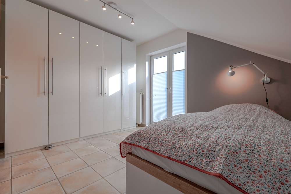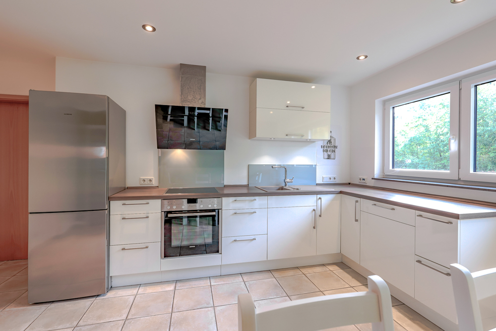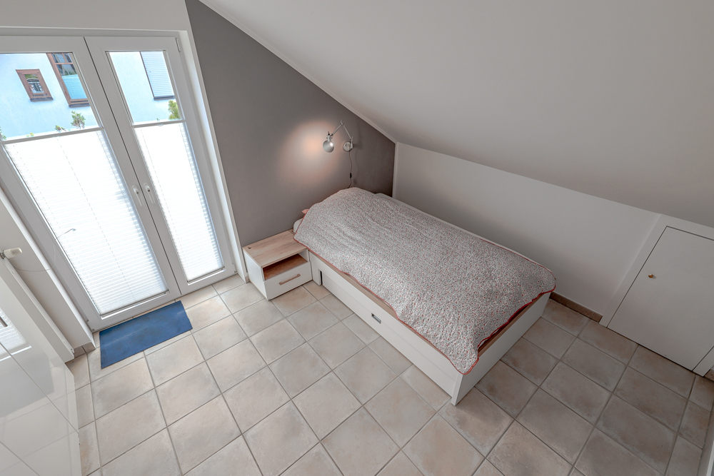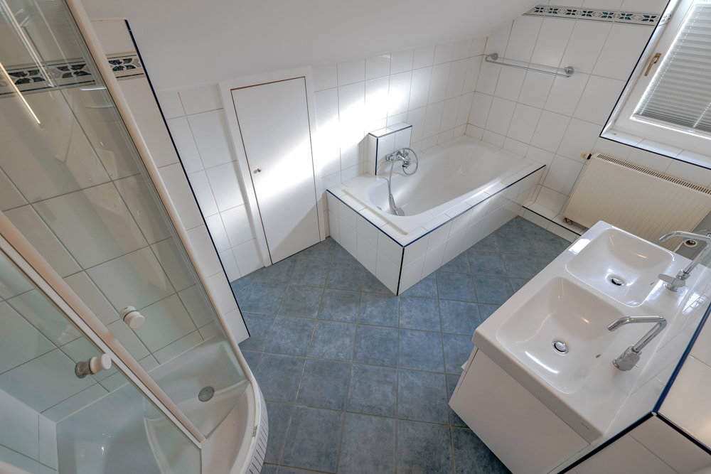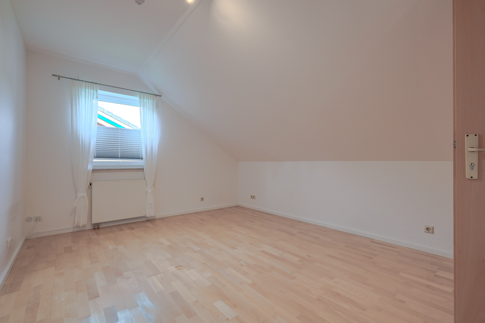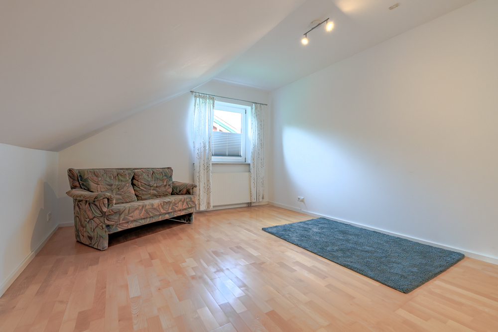 Diese gepflegte 3-Zimmer-Eigentumswohnung befindet sich im Obergeschoss – zugleich Dachgeschoss – eines im Jahr 1999 erbauten, ruhigen 2-Parteien-Hauses. Die Wohnung überzeugt durch ihre durchdachte Raumaufteilung, die helle Atmosphäre und die großzügige Gaube in der Küche, die nachträglich erweitert wurde und für ein besonders offenes Raumgefühl sorgt. Raumaufteilung und Ausstattung Die ca. 57 m² große Wohnung verfügt über zwei Schlafzimmer, ein geräumiges Wohnzimmer, eine helle Küche mit Platz für einen Essbereich, eine Diele sowie ein Tageslichtbad mit Fenster, Doppelwaschtisch, Badewanne, Dusche und WC. Stauraum ist in den Dachschrägen vorhanden, sodass sich jeder Quadratmeter optimal nutzen lässt. Die moderne Einbauküche ist im Kaufpreis enthalten und bietet alles, was man für den Alltag benötigt. Eine Gegensprechanlage sorgt für zusätzlichen Komfort. Außenbereich und Gemeinschaftsräume Zur Wohnung gehört ein PKW-Außenstellplatz direkt am Haus. An den Balkon schließt sich eine Außentreppe, welche jedoch vorrangig als Fluchtweg sowie als Zugang zu den Mülltonnen dient. Ein Kellerraum steht nicht zur Verfügung. Im Untergeschoss befindet sich eine gemeinschaftliche Waschküche. Gemeinschaft und Eigentumsverhältnisse Die Wohnung besitzt 37/100 Miteigentumsanteile am Grundstück sowie weitere Anteile am Weg, der zum Haus führt. Das gepflegte Gemeinschaftseigentum und die kleine Eigentümergemeinschaft mit nur zwei Parteien sorgen für eine angenehme und ruhige Wohnatmosphäre.Ausstattung