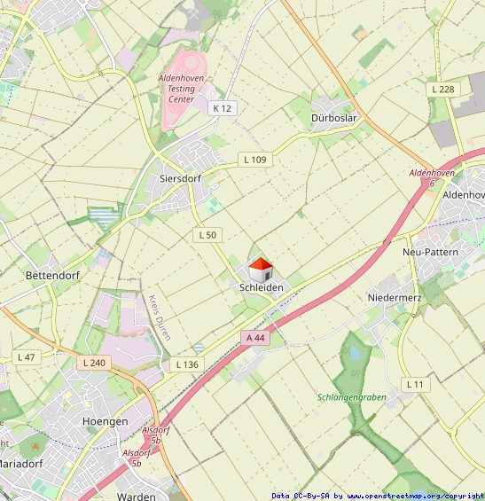 Die Immobilie befindet sich im beliebten Aldenhovener Ortsteil Schleiden – einem ruhigen, familienfreundlichen Wohngebiet, das ländliche Wohnqualität mit kurzen Wegen und einer sehr guten Infrastruktur vereint. Besonders Familien profitieren von der hervorragenden Lage: Der Kindergarten liegt nur rund 100 Meter entfernt und ist in wenigen Schritten erreichbar, während die Grundschule im benachbarten Ortsteil durch eine direkte Busverbindung in nur 3 bis 5 Minuten sicher erreicht wird. Auch im Alltag überzeugen die kurzen Wege: Lebensmittel- und Drogeriemärkte wie Aldi, Action und Edeka sind in etwa 3 Autominuten erreichbar, ergänzt durch Apotheken, Bäckereien, Banken und verschiedene Gastronomieangebote in Aldenhoven. Die naturnahe Umgebung beginnt praktisch vor der Haustür und lädt mit Feldern, Spazierwegen und Grünflächen zu Aktivitäten im Freien ein. Sport- und Vereinsangebote im Ort runden das familienfreundliche Umfeld ab. Pendler schätzen die schnelle Erreichbarkeit der A44, die eine optimale Anbindung nach Aachen, Jülich, Düsseldorf und Köln bietet. So verbindet diese Lage die Ruhe des ländlichen Wohnens mit der Flexibilität urbaner Erreichbarkeit – eine Kombination, die den Wohnwert spürbar erhöht.Sie sehen gerade einen Platzhalterinhalt von Google Maps. Um auf den eigentlichen Inhalt zuzugreifen, klicken Sie auf die Schaltfläche unten. Bitte beachten Sie, dass dabei Daten an Drittanbieter weitergegeben werden.