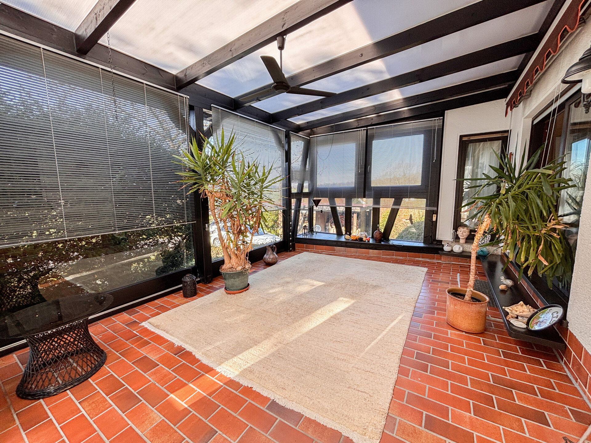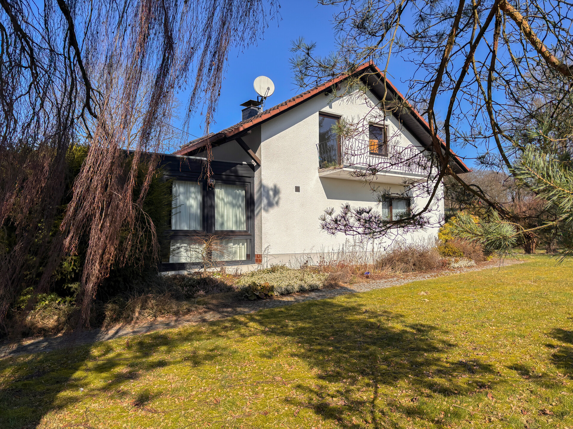 – Gäste-WC – Bodenbeläge bestehend aus Vinyl, Laminat und Teppich – Kaminofen (5 kw, Varde 2012) – Wintergarten – Balkon – Gartenhaus – Unterkellert – Öl-Zentralheizung (Viessmann 2003) – Glasfaserkunststofftanks (4000l) – Kellerbar – Holzunterstand – optional mit wenig Aufwand als Carport nutzbar – Garage mit elektrischem Garagentor – Zwei Stellplätze – Fenster Rollläden manuell, teilweise elektrisch – Internetverfügbarkeit 250MBit/sLage