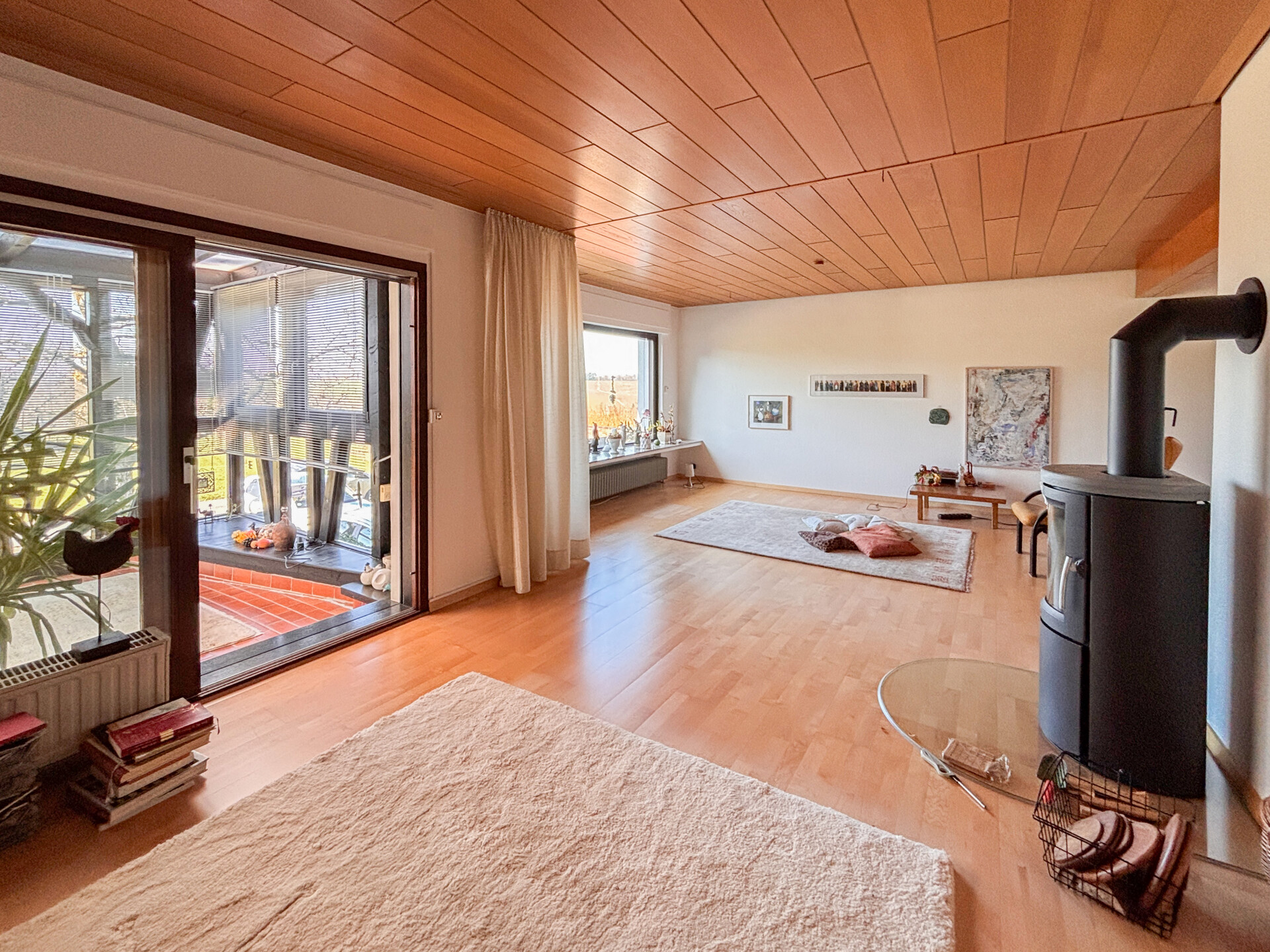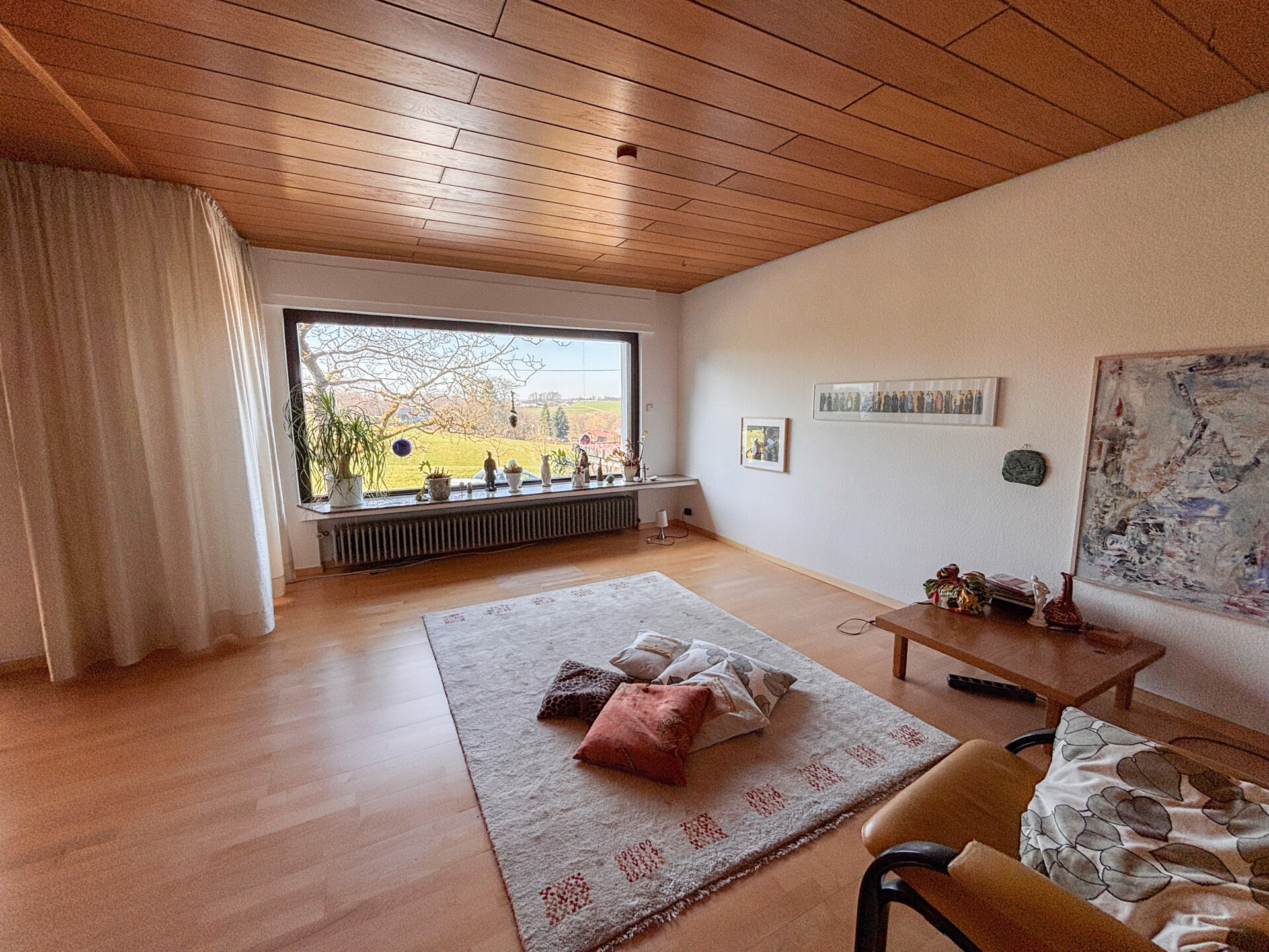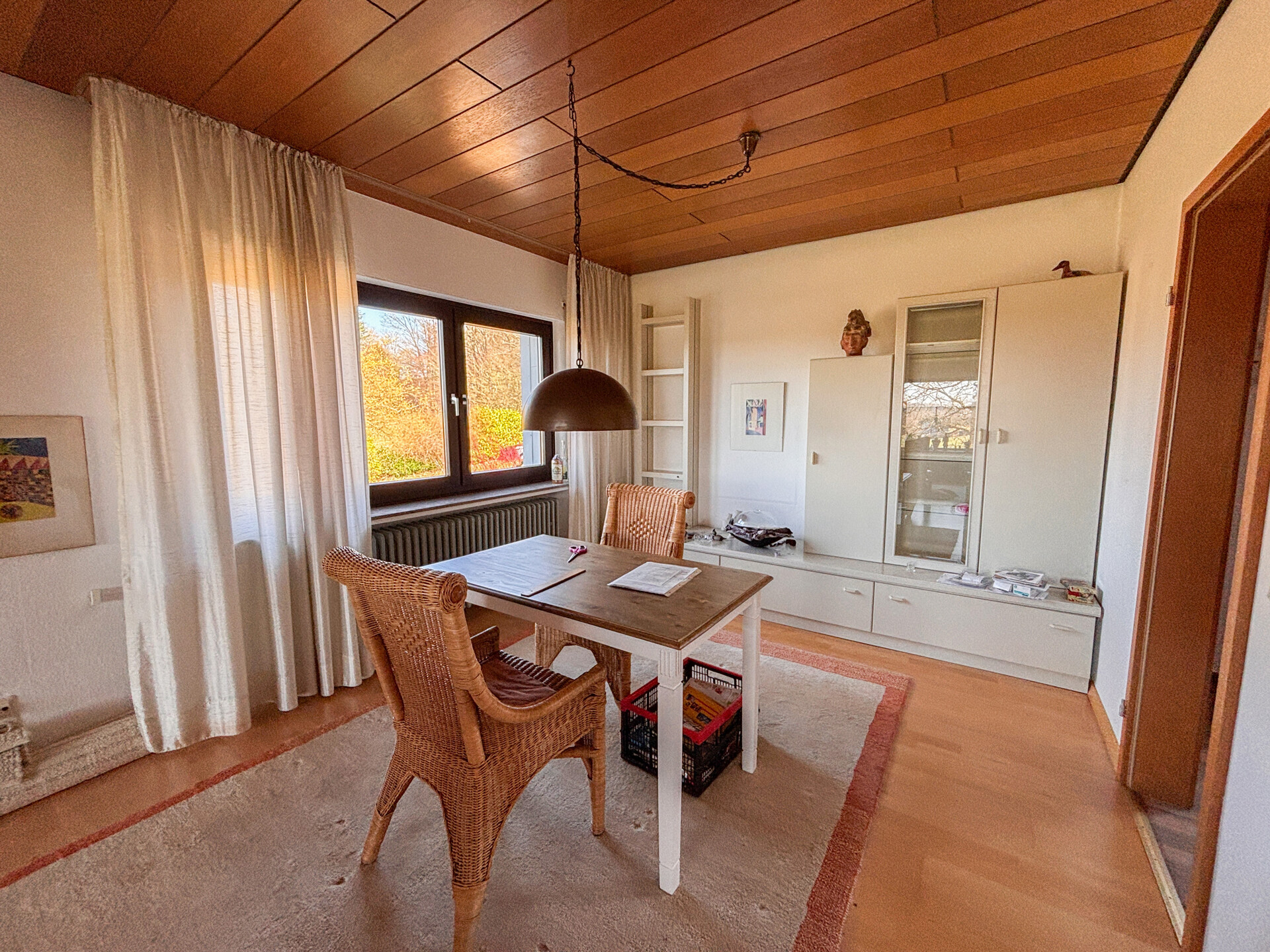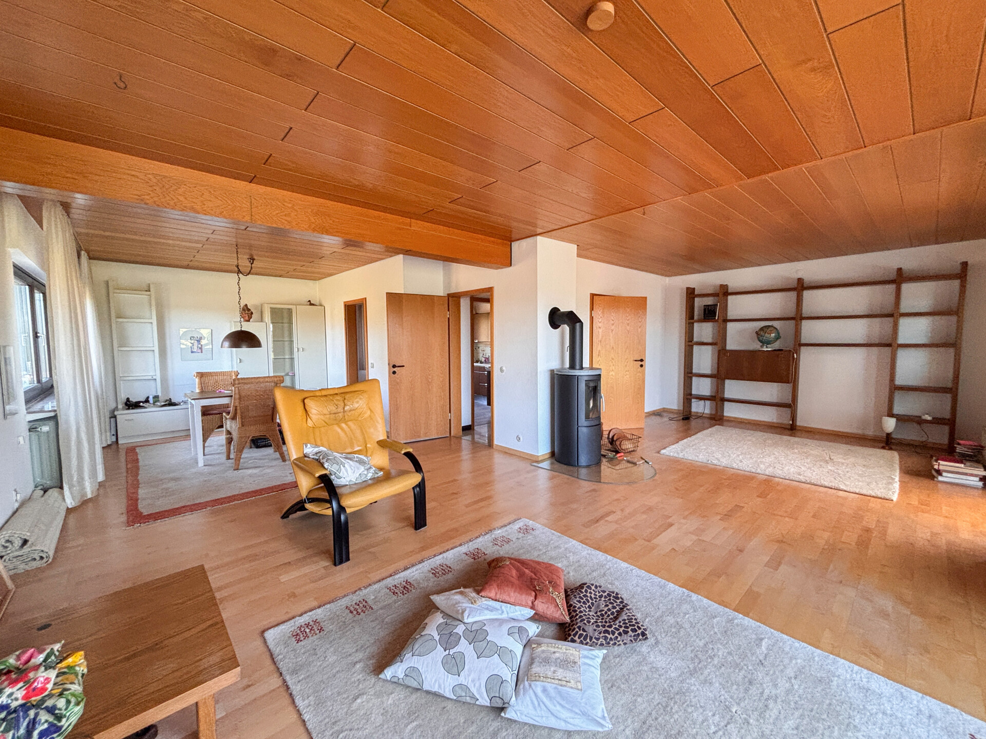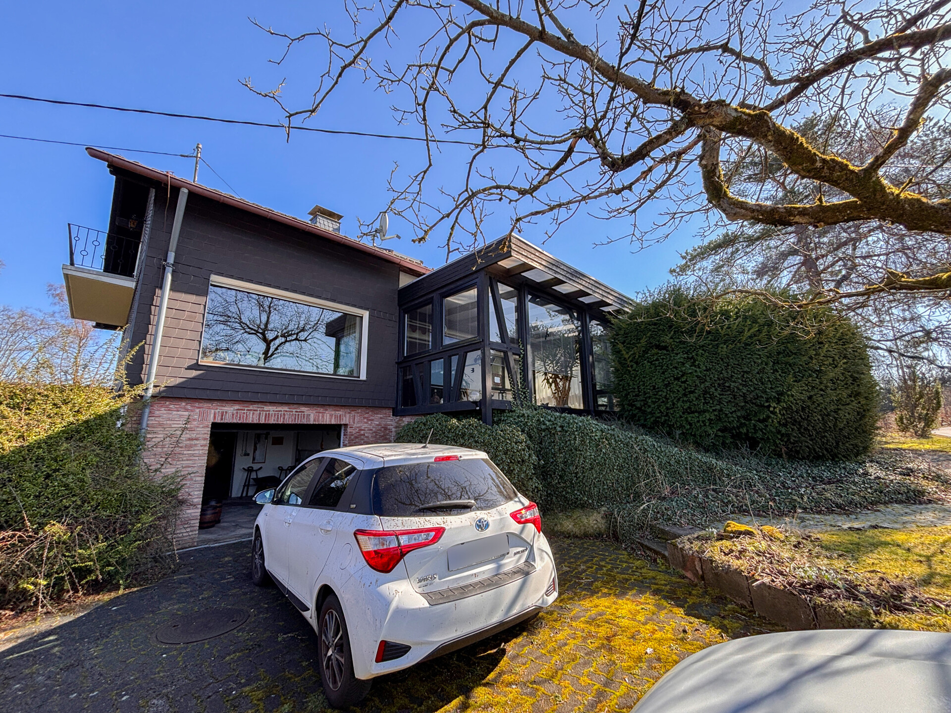 Dieses massiv erbaute und gepflegte Einfamilienhaus aus dem Jahr 1966 bietet auf zwei Etagen eine Wohnfläche von ca. 113 m². Das großzügige Grundstück mit etwa 3.964 m² teilt sich in 2 Flurstücke auf und eröffnet zahlreiche Möglichkeiten zur individuellen Gestaltung und lädt mit seiner herrlichen Aussicht zum Verweilen ein. Im Erdgeschoss erwartet Sie ein durchdachter Grundriss mit einem Gäste-WC, einem Badezimmer sowie einem Arbeitszimmer, individuell als Gästezimmer nutzbar. Das Herzstück dieser Etage bildet der großzügige Wohn- und Essbereich mit Kaminofen. Von hier aus gelangen Sie direkt in den Wintergarten. Ergänzt wird das Erdgeschoss durch eine Küche. Das Dachgeschoss bietet drei Schlafzimmer, ein separates WC und ein Tageslichtbad. Die beiden Schlafzimmer verfügen jeweils über einen eigenen Balkon mit Blick in den Garten, wobei eines der Zimmer zusätzlich mit einer praktischen Ankleide ausgestattet ist. Das Haus ist unterkellert und bietet damit zusätzlichen Stauraum. Hier befinden sich eine gemütliche Kellerbar, eine Waschküche, ein Vorratsraum sowie der Heizungsraum. Zudem besteht ein direkter Zugang zur Garage. Hier erwartet Sie ein Zuhause mit viel Raum, Charme und Entwicklungsmöglichkeiten.Ausstattung
