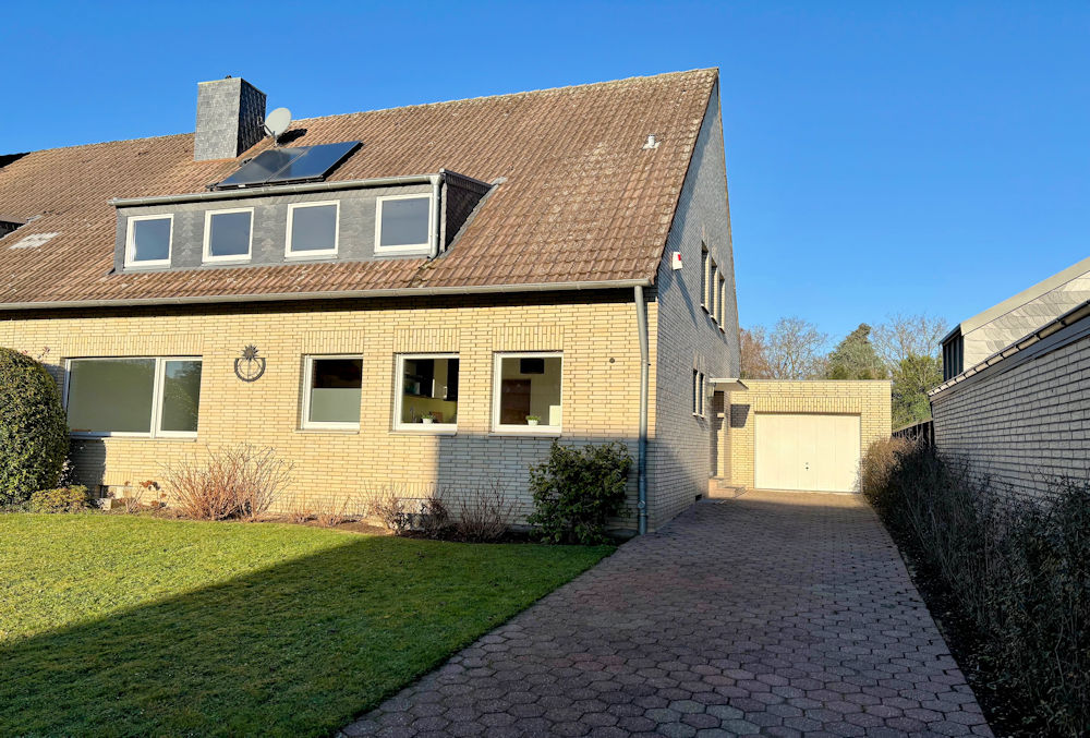 Die charmante Doppelhaushälfte mit Garage wurde 1965/66 massiv mit Keller erbaut. Seit der Fertigstellung des Hauses wurden im Laufe der Jahre umfassende Modernisierungen vorgenommen. Die Fassade präsentiert sich als Klinker-/Verblendsteinfassade. Die lichtdurchflutete Wohnfläche im Haus erstreckt sich vom Erdgeschoss bis zum Obergeschoss. Im EG befindet sich der freundliche, helle und großzügige Eingangsbereich, ein Badezimmer mit Tageslicht, sowie das Wohnzimmer, das Esszimmer, jeweils mit schönem Ausblick auf die Terrasse und in den Garten sowie ein Schlaf-, Arbeits- oder Wohnzimmer. Im Obergeschoss befinden sich 3 Zimmer, die bislang als Schlaf-/Arbeitszimmer genutzt werden sowie das Tageslichtbad. Der Keller bietet Platz als Stau- und Lagerfläche oder als Hobbyraum. Dieses Haus befindet sich seit dem Jahr 1966 im Besitz der heutigen Eigentümerfamilie und wurde über Generationen hinweg mit großer Sorgfalt genutzt und gepflegt. Als Lebensmittelpunkt der Familie hat es viele Jahre ein behütetes Zuhause geboten und wurde stets verantwortungsvoll bewohnt. Die langjährige Eigentümerschaft spiegelt sich in der gewachsenen Atmosphäre der Immobilie wider und verleiht ihr einen besonderen, authentischen Charme und Charakter.Ausstattung