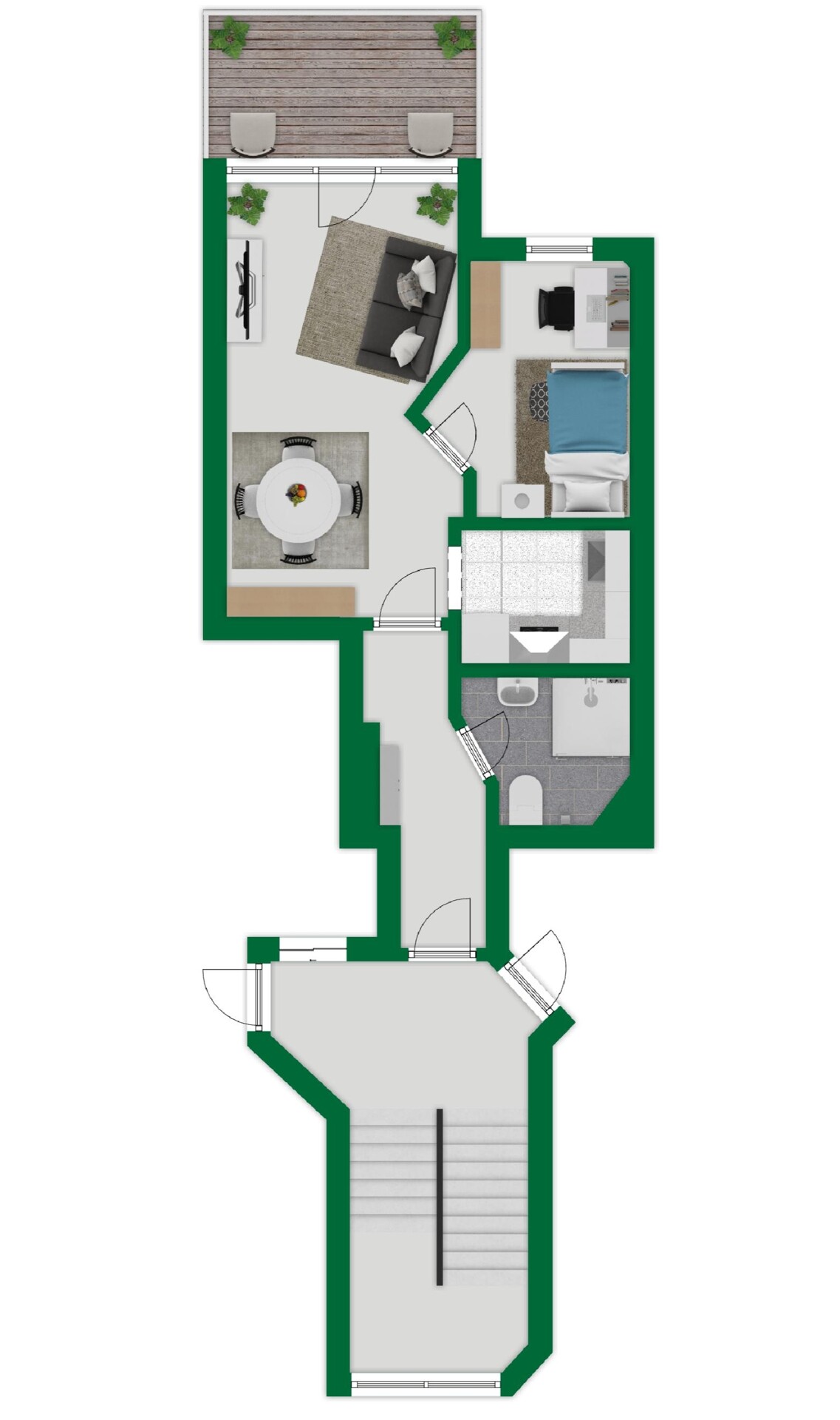 Angeboten wird eine solide vermietete Eigentumswohnung im 2. Obergeschoss eines gepflegten Mehrparteienhauses in Königswinter-Oberdollendorf. Sie parken Ihr Auto in der Tiefgarage und fahren mit dem Aufzug bis vor Ihre Wohnungstüre. In der Wohnung angekommen, erwartet Sie auf der rechten Seite ein praktisch geschnittenes Badezimmer, welches mit einer Dusche, Waschbecken und WC ausgestattet ist. Die Küche befindet sich direkt neben dem Badezimmer. Auf der linken Seite des Flures finden Sie einen kleinen aber praktischen Abstellraum. Das Herzstück der Wohnung stellt sicherlich der Wohnbereich dar. Dieser bietet genügend Platz, um hier ebenfalls eine Ess-Ecke zu integrieren und ermöglicht zudem den Zugang auf den Balkon mit Blick zum Siebengebirge. Das Schlafzimmer ist kompakt geschnitten und grenzt an das Wohnzimmer an. Ihrer neuen Eigentumswohnung sind folgende Sondernutzungsrechte zugeordnet: *Kellerraum-Nr. 33 Im Angebotspreis inkludiert ist der Tiefgaragenstellplatz-Nr. 65 in der Tiefgarage 2. Die Miteigentumsanteile belaufen sich insgesamt auf 15,7188 von 1.000. (1,9783 für den Tiefgaragenstellplatz + 13,7405 von der Wohnung). Die Instandhaltungsrücklage der Eigentümergemeinschaft betrug zum 31.12.2024: 83.297,16 €. Der Anteil dieser Wohnung an der Gesamt-Instandhaltungsrücklage des Gebäudes beträgt 1.309 € (Stand 31.12.2023). Das monatliche Hausgeld für das Wirtschaftsjahr 2024 betrug das Hausgeld 194,18 € inkl. Heizkostenvorauszahlung. Hiervon können rd. 121 € auf den Mieter umgelegt werden. Die übrigen, nicht umlagefähigen rd. 73 € setzen sich u. a. zusammen aus Verwaltergebühren, Reparaturen und Zuführung in die Instandhaltungsrücklage.Ausstattung