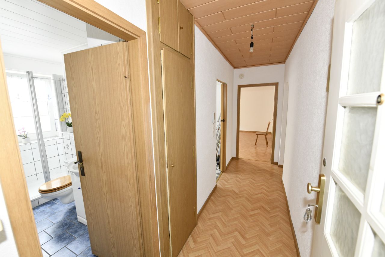 Das Haus wurde in herkömmlich, massiver, dreigeschossiger Bauweise mit Vollunterkellerung und Satteldach im Jahr 1950 gebaut. In späterer Zeit wurde auch das Dachgeschoß zu Wohnzwecken ausgebaut. Durch ständige Modernisierungs- und Renovierungsarbeiten präsentiert es sich in einem zeitgemäßen, gut unterhaltenen Zustand. Das Grundstück hat eine Gesamtgröße von ca. 3.013 m² und ist mit Rasenflächen und altem Baumbestand gepflegt angelegt. Die Wohnfläche der Wohnung beläuft sich auf ca. 67 m², die sich wie folgt aufteilt: Eingangsflur, Küche, Bad, Wohnzimmer, Schlafzimmer, Arbeitszimmerzimmer und ein großer Balkon. Ein eigener Kellerraum gehört zum Angebot, sowie die Mitnutzung vom Trockenkeller und einer Münzwaschmaschine. Wie bereits erwähnt, präsentiert sich das Anwesen und die Wohnung in einem sehr gepflegten, guten Unterhaltungszustand. Übergabe: Die Wohnung ist frei und kann sofort übernommen werden. Hausgeld: Das monatliche Hausgeld beträgt 303,00 Euro.Ausstattung